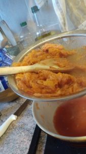 A recipe for marmalade also turned up in the magazine I was reading last weekend (LandScape issue 44 Jan/Feb 2018). By the time I had decided to add the marmalade kit to my Riverford order, it had sold out. There was, however, a bowl of oranges in the kitchen that people had been ignoring and I had already had to throw a couple of rotten ones into the compost. Gathering together all the empty jars I could find, I realised I didn’t have enough. A trawl though local shops resulted in my buying a big, new stainless steel pan, 2 kilograms of sugar and some small jars. That very day, a used copy of ‘Forgotten Skills of Cooking’ by Darina Allen, as recommended by June Molloy Vladička of My Food Odyssey ( https://myfoododyssey.com/books/ ) was delivered from Amazon. This book has several recipes for marmalade and guidance for success with preserves. Suddenly I was awash with recipes and advice. It was time to have a go myself and document my attempts on Mrs Bloggins.